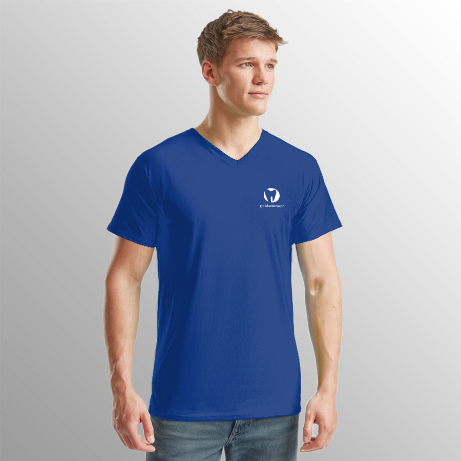 Die Herrenshirts sind mit Rundhals-Ausschnitt oder V-Ausschnitt in den Größen S–3XL erhältlich und bestehen aus 100% Baumwolle.